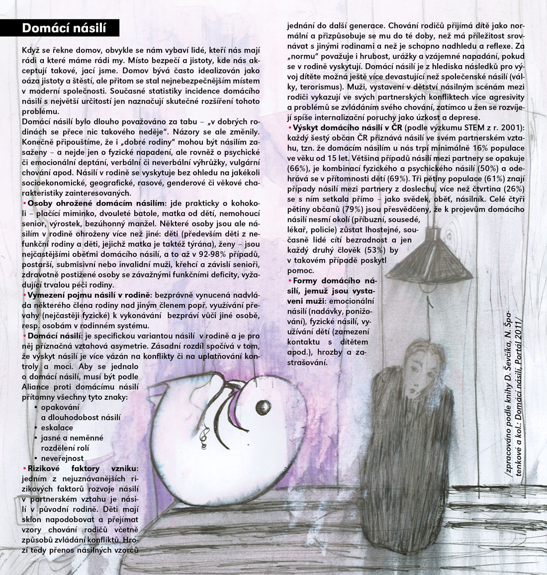 Statistiky uvádějí, že každý šestý občan ČR přiznává násilí ve svém partnerském vztahu, tz. že domácím násilím u nás trpí minimálně 16% populace ve věku od 15 let. Většina případů násilí mezi partnery se opakuje (66%), je kombinací fyzického a psychického násilí (50%) a odehrává se v přítomnosti dětí (69%). Celé čtyři pětiny občanů (79%) jsou přesvědčeny, že k projevům domácího násilí nesmí okolí (příbuzní, sousedé, lékař, policie) zůstat lhostejné, současně lidé cítí bezradnost a jen každý druhý člověk (53%) by v takovém případě poskytl pomoc (podle výzkumu STEM v r. 2001, publikovaného v knize D. Ševčíka, N. Špatenkové a kol.: Domácí násilí, Portál 2011).