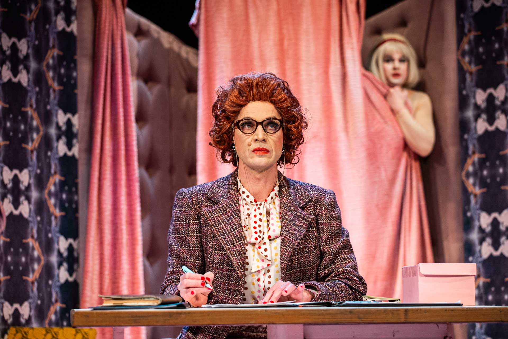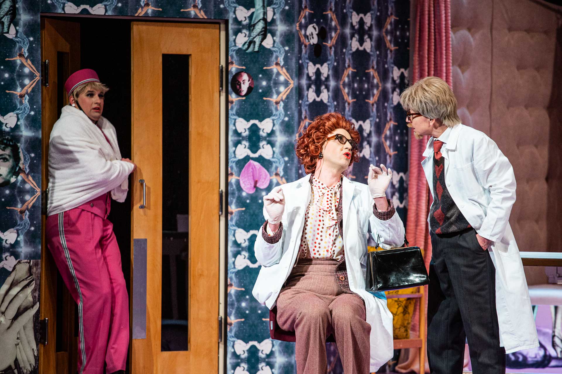 Na začátku této bláznivé podívané je přitom zdánlivě standardní pracovní pohovor mezi psychiatrem doktorem Prenticem a kandidátkou na pozici asistentky, slečnou Barcleyovou. On se tváří profesionálně a ona cudně, když se však objeví manželka, paní Prenticeová, je žadatelka o místo už téměř nahá. Doktor se svoje svůdnické manévry snaží zamaskovat, slečnu Barcleyovou ukryje a později ji v mužském převleku vydává za hotelového zřízence. Skutečný hotelový zřízenec Nicholas Beckett, milenec paní Prenticeové, se též do děje vmíchá, ale většinou převlečený za ženu. Proces demaskování popohání doktor Rance, který na klinice doktora Prentice zrovna provádí inspekci, a poté i ruka zákona seržant Match. Po značné konzumaci alkoholu dojde i na střelbu a střelná zranění, ale happy end přesto přijde. A je stejně divoký jako celý předchozí sled šílených, zoufalých a hlavně neúspěšných pokusů, jak ožehavou situaci zachránit anebo se z ní alespoň nezbláznit. V režijním nastudování Lukáše Kopeckého.