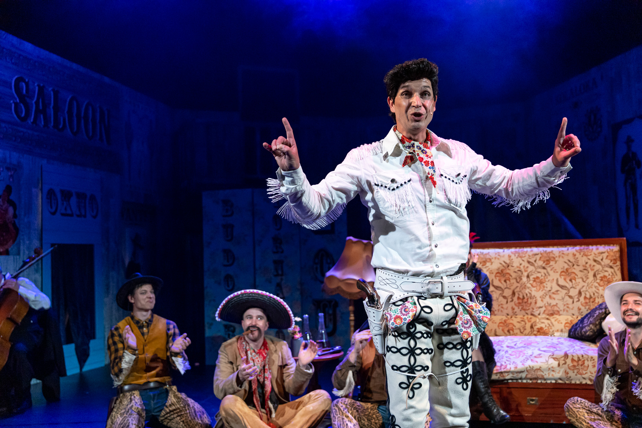 Atmosféra divokých přestřelek odvážných mužů s kolty proklatě nízko, neodolatelně svůdných žen, prošpikovaná chytlavými melodiemi čeká i na diváky ve Slováckém divadle, v režii Martiny Schlegelové.