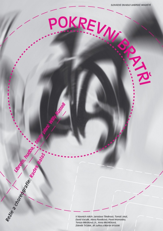 Rockový muzikál Willyho Russella z roku 1983 Pokrevní bratři (v překladu Martina Fahrnera) na jeviště Slováckého divadla přivedl a s herci nazkoušel hostující režisér a choreograf Radek Balaš. Originální výprava tvořená železobetonovou konstrukcí postříkanou grafitti je dílem Lucie Kuropatové.