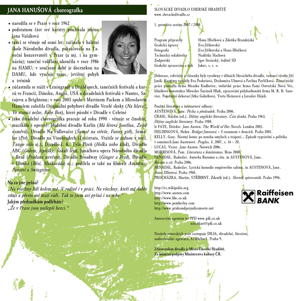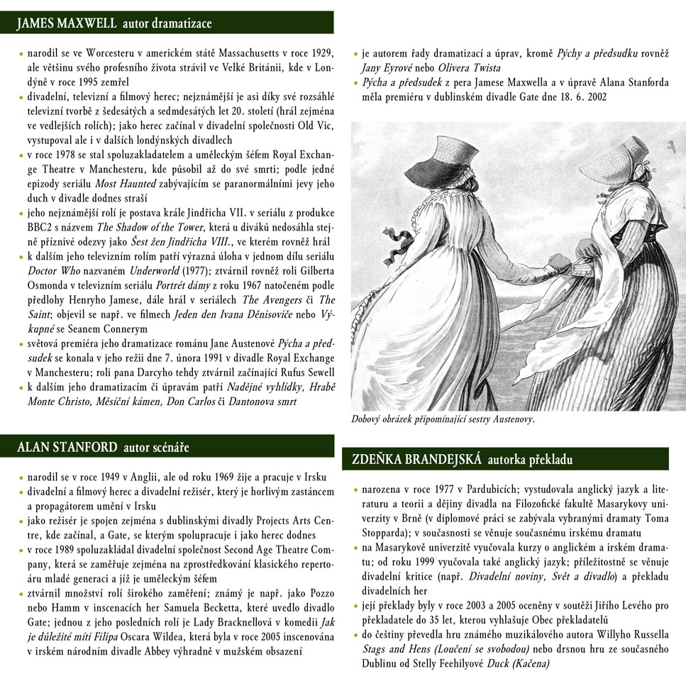 Přestože se román Jane Austenové Pýcha a předsudek odehrává v Anglii na přelomu 18. a 19. století, příběh lásky a nenávisti, o kterém vypráví s humornou nadsázkou, je víceméně nadčasový. Důkazem toho je nejen fakt, že ve filmové podobě v režii Joe Wrighta získal v roce 2005 čtyři nominace na Oscara, ale také že v dramatizaci Jamese Maxwella a Alana Stanforda sklízí úspěchy na světových jevištích od roku 1994. Líčí osudy pěti sester Bennetových, které jejich matka vede pevnou rukou k životnímu názoru, že žena je šťastná jedině tehdy, když se dobře provdá. Jediná z pěti sester - Elizabeth s tím však zásadně nesouhlasí a blížící se "hon na nápadníka", svobodného a bohatého pana Bingleyho, sleduje jakoby nezúčastněně a v doprovodu ironického komentáře. Lásku pana Bingleyho si získá její nejstarší sestra, citlivá a krásná Jane. Vzájemnému štěstí však stojí v cestě mnohé komplikace, za něž je pravděpodobně zodpovědný Bingleyho dobrý přítel pan Darcy. Ačkoliv se pan Darcy zdá arogantní a pyšný a v rodině Bennetových mu proto nikdo nemůže přijít na jméno, za necitlivostí ve skutečnosti skrývá své pravé já. Že je někým jiným, než kým se zdá, odhalí teprve Elizabeth, pro kterou byl původně skvělým terčem sarkastických poznámek. Elizabeth, postupně zjišťující pravou identitu tajemného "pyšného" muže, musí tváří v tvář vlastním předsudkům změnit na Darcyho názor. Romantické drama, posílené britským humorem bude ve Slováckém divadle poprvé pohostinsky režírovat Radovan Lipus.