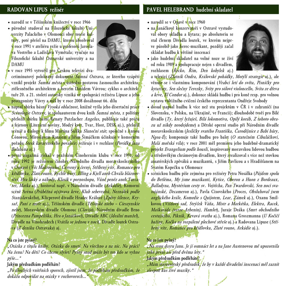 | Jevištní stavby | Dan Hrabal Pavel Kratochvíl Roman Lacina Kamil Pail František Procházka Vít Svozil Petr Žajdlík |
