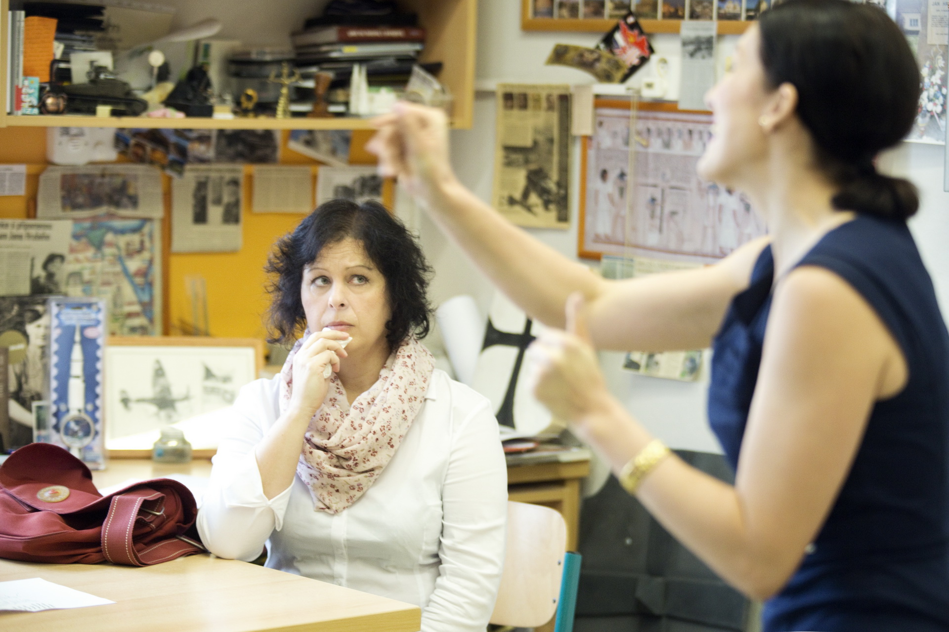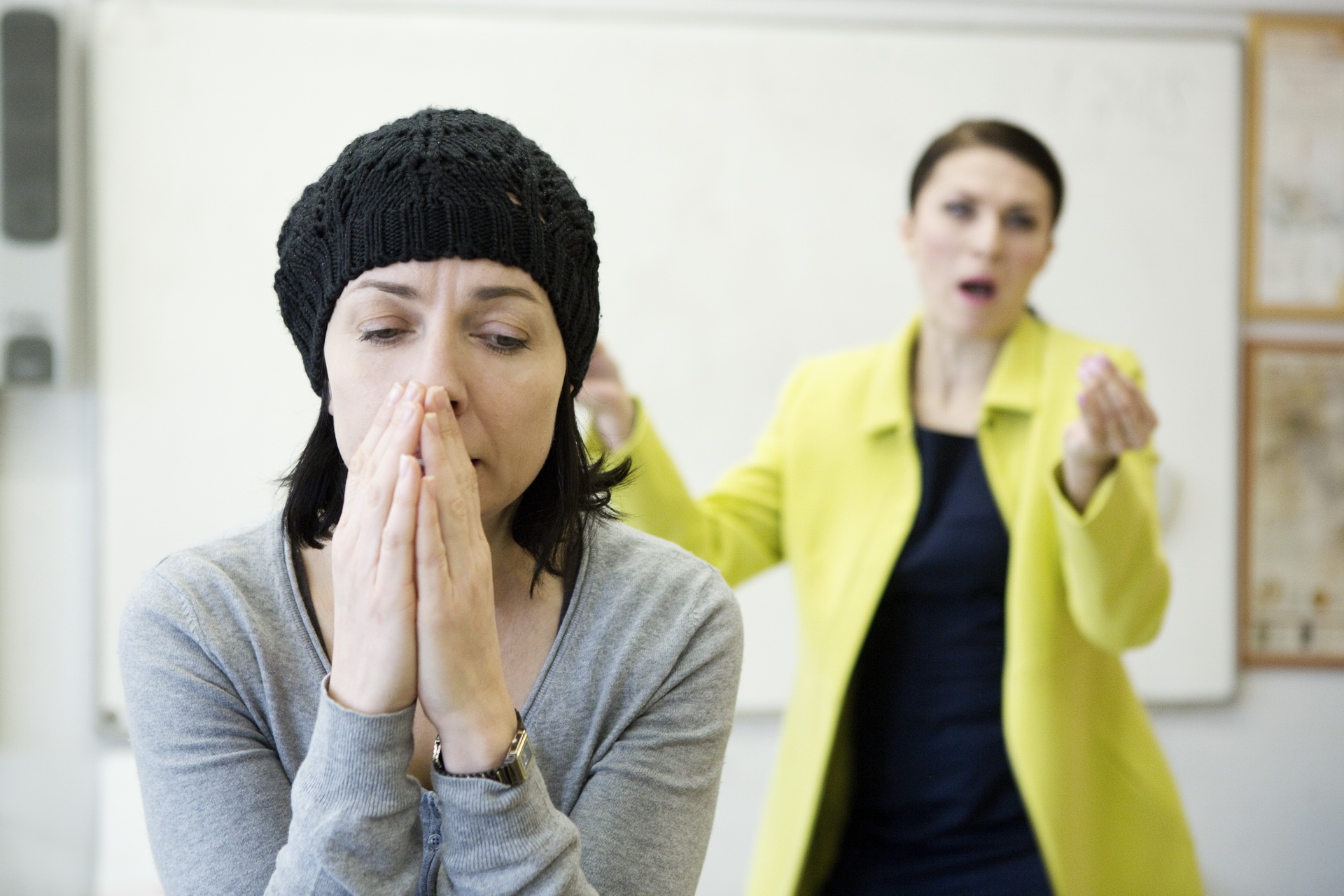 Jinak se ale dějí věci. Zástupci rodičů se rozhodnou demoGraticky vykázat ze školy třídní učitelku žáků páté třidy, protože prospěch jejich ratolestí se ve chvíli, kdy budou podávat přihlášky na víceletá gymnázia, nepřehlédnutelně zhoršil. A za to může samozřejmě ta úča. Převažuje mínění, že děti terorizuje, zasedla si na ně a léčí si na nich vlastní mindráky. Neříkejte, že takový vztah ke škole neznáte?! Ti ubožáci s mizernými platy, a proti nám naprosté společenské nuly, by se přece před námi měli plazit! Žijí z našich daní. Dříve za dělnické peníze. Ctění rodičové Pavlína Hejcmanová, Jitka Hlaváčová, Tereza Novotná, Josef Kubáník a Petr Čagánek (alternuje Zetel) to dávají patřičně najevo.