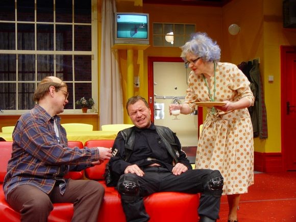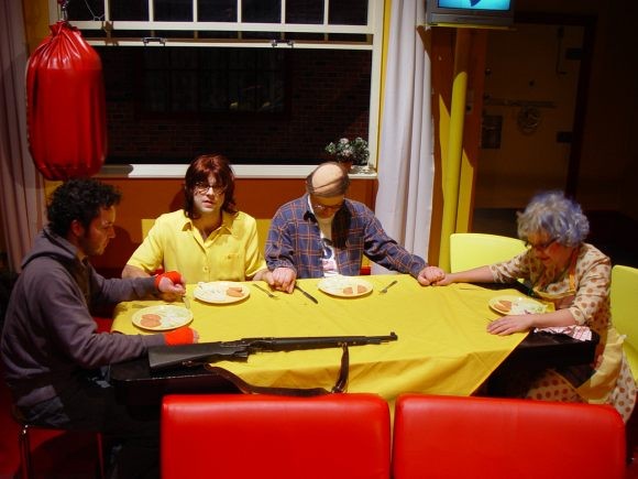 Bizarní komedie nás zavádí mezi členy moderní velkoměstské rodiny: matriarchální matka a ušláplý otec už zcela nejsou s to vyrovnat se se současnou životní realitou. Jejich dcera Patsy je typem silné dívky s potřebou převychovávat své nápadníky a syn Kenny se zase snaží vyrovnat se svou tajenou homosexualitou. Matka zoufale usiluje o to udržet dojem rodiny a všichni bojují o vlastní soukromí, které je narušováno neustálými psychopatickými telefonáty a zvuky všudypřítomné střelby v ulicích. Chystá se svatba Patsy se snoubencem Alfrédem, chlapíkem, který má recept na to, jak chodit po nebezpečných ulicích - nejlepší je nechat se zmlátit a při tom si snít. Zločiny ve městě se hromadí - poručík místní policie má podezření, že se jedná o rozsáhlé spiknutí. Americký karikaturista a žurnalista Jules Feiffer si na svou pekelně satirickou mušku vzal moderní svět, v němž se násilí, terorismus a ztráta soukromí staly atributy každodenního života. Své postřehy "obrátil naruby", zpracoval formou černě humorné nadsázky, a na diváky zaútočil výsostně komickou formou. Hra byla napsána v padesátých letech, její aktuálnost však neztrácí v našem středoevropském prostoru na jasu ani dnes či dokonce např. v blízké budoucnosti. Režisér Robert Bellan slibuje po Rychlých šípech, Blbci k večeři a Výstřelech na Broadwayi opět ironicky groteskní, lehce parodickou podívanou.
