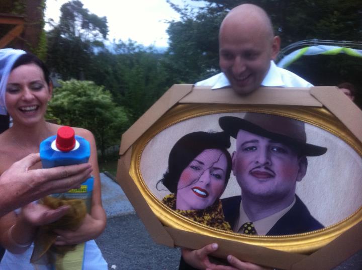 A pak už se za doprovodu cimbálové muziky zpívalo, tancovalo a hodovalo. A jak vypadaly svatební dary od kolegů? Novomanželé od nich dostali velký obraz s vyobrazením nevěsty a ženicha a la plakát ke komedii 39 stupňů, taneční hodiny (jelikož si ženich několikrát posteskl, že tanec není jeho oblíbená „disciplína“) a také okrasnou japonskou třešeň (vybírala Jitka Josková). Svatební veselí se protáhlo do časných ranních hodin. Tento týden už ale celá parta divadelníků bude večer co večer trávit ve Slováckém divadle. Zájemci, kteří by chtěli vidět, jak svatba probíhala, si mohou prohlédnout fotografie na divadelním Facebooku.